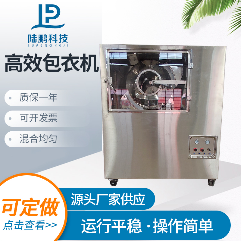 包衣机在包衣过程在主机的空间内完成,无粉尘飞散,浆液飞溅,改善了作业环境,药片交叉污染小,符 合"GMP" 标准;药片包衣工艺简单,大幅度缩短了包衣时间,生产效率高;包衣功能齐全,广泛应用于制药、生物制品等领域,可为各种片剂、丸剂、等包制各种有机薄膜,水溶薄膜和糖衣(在药物方面可实 现现缓、控释作用) , 具有效率高、包衣过程自动控制、耗能低、占地小等优点。