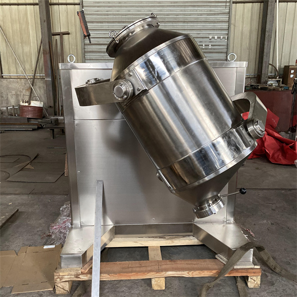 料筒各处为圆弧过渡,并经过精密抛光处理,达到GMP要求。工作原理∶混合料桶,通过二只Y型万向节悬装于主、从动轴端部,二只万向节在空间既交叉又互相垂直。当主动轴被拖动旋转时,万向节使料桶在空间周而复始地作平移、转动和翻滚等复合运动。物料则在筒体内跟着作轴向、径向和环向的三维复合运动。筒内的多种物料相互流动、扩散、掺杂,呈均匀状态。