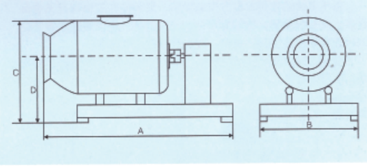 型号 | 料桶容积(L) | 装料容积(L) | 装料量(kg) | 旋转速度(r/min) | 电子总功率(kw) | 外形尺寸AxBxCxD(mm) | 总重量(kg) |